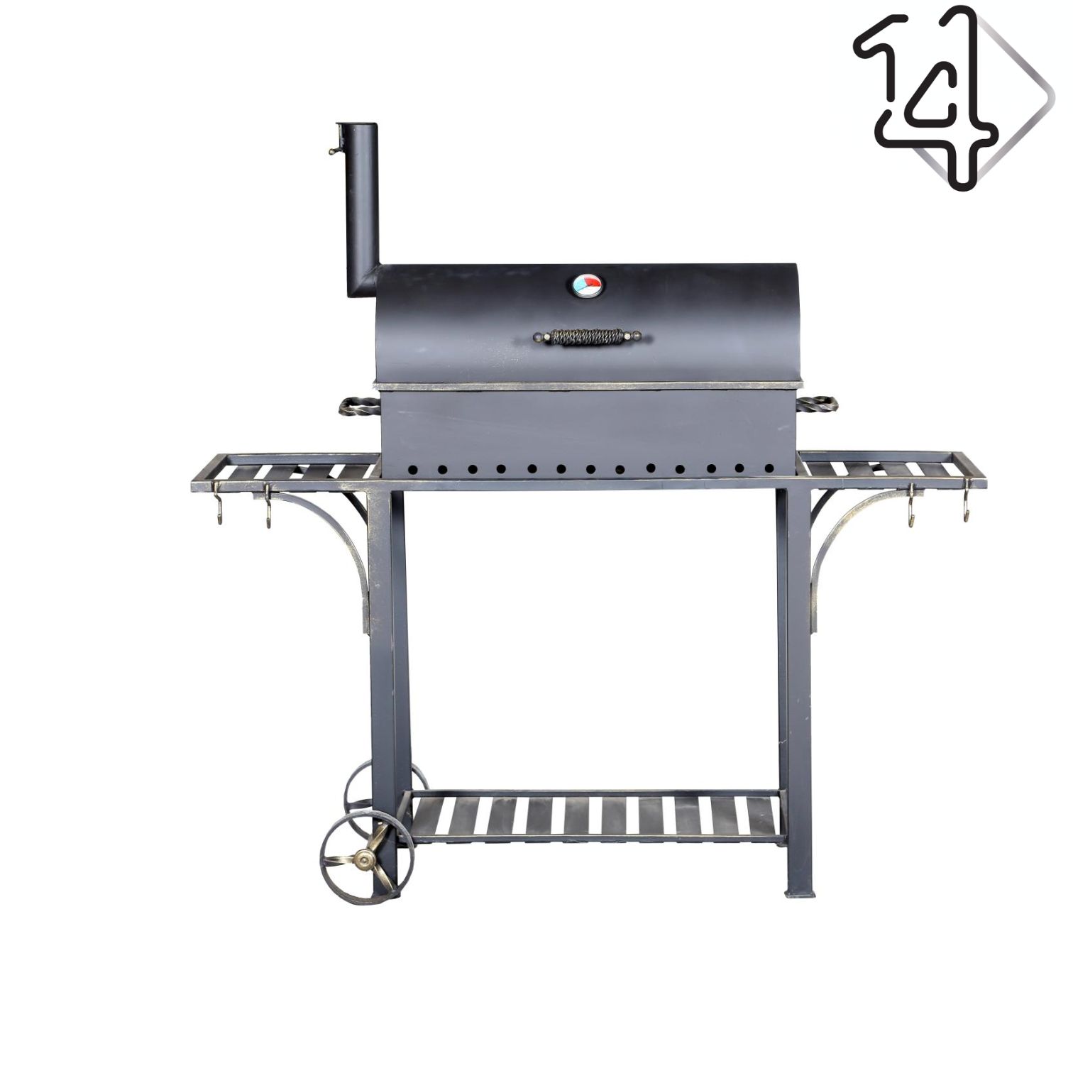 общий размер: длина 1340 мм, ширина 400 мм, высота 1250 мм; размер мангала: длина 780 мм; размер жаровни: длина 720 мм, ширина 300 мм, высота 350 мм |